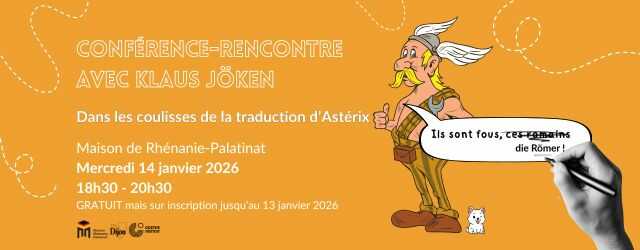 Dans les coulisses d’Astérix : le traducteur allemand Klaus Jöken présentera son travail de traduction et montrera, à travers des exemples concrets tirés, entres autres, du tout dernier album d’Astérix, comment les pointes françaises deviennent des éclats de rire en allemand. Inscrivez-vous ici !