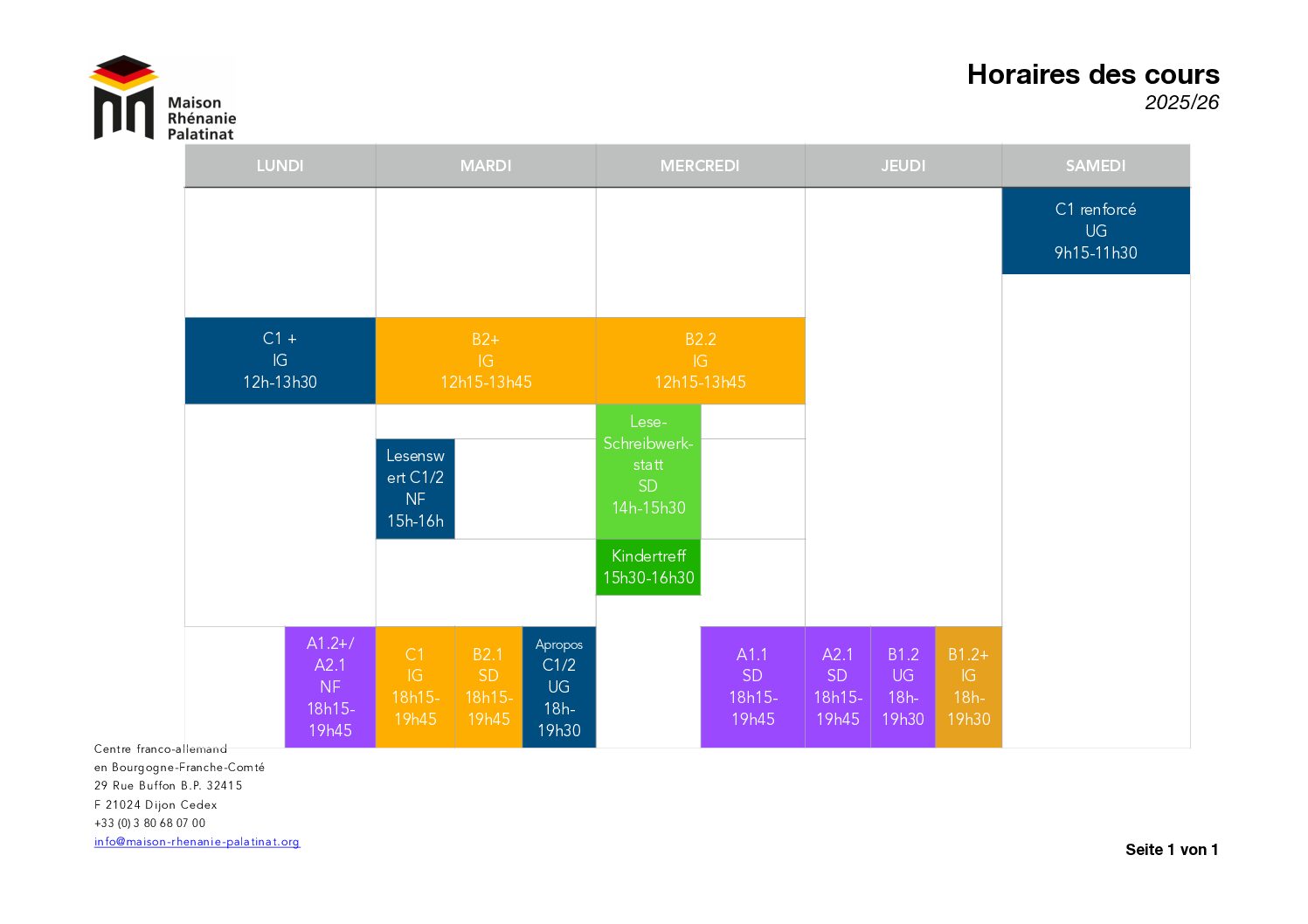 Retrouvez les horaires pour nos cours collectifs de l’année 2025/26 sous réserve de changements ci-dessous (cliquer pour agrandir l’image).