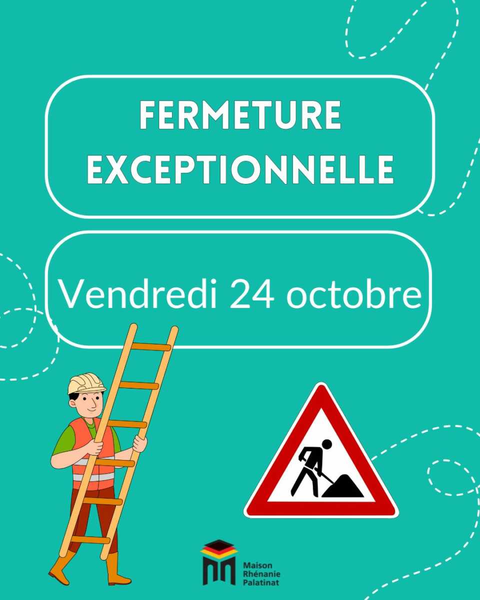 Ce vendredi 24 octobre, en raison de travaux, nos bureaux seront exceptionnellement fermés.