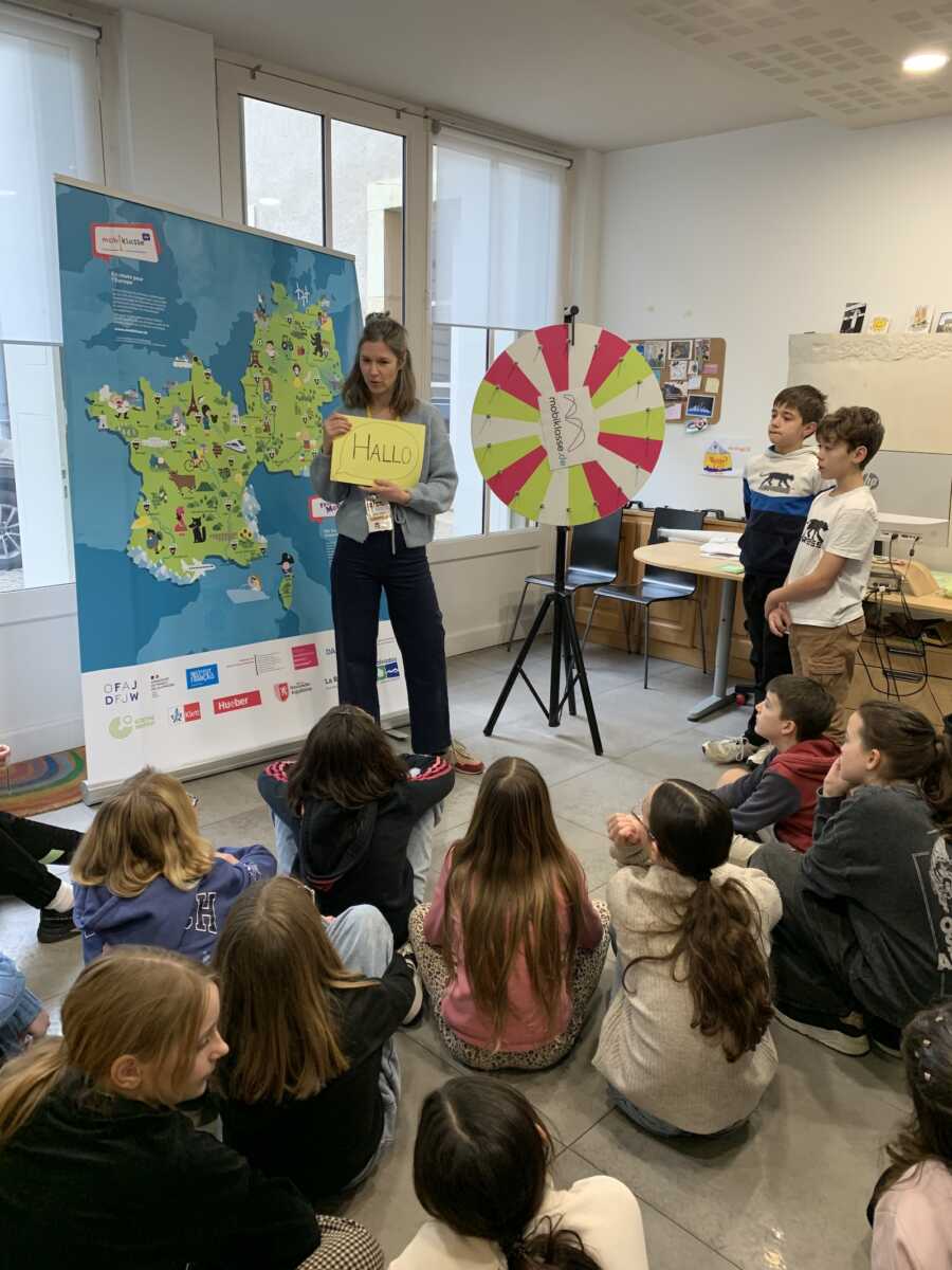 Outre les animations linguistiques proposées par l’animatrice Mobiklasse et les présentations des programmes de mobilité franco-allemands dans les collèges et lycées de Dijon et de ses environs, les élèves ont également eu l’occasion de découvrir l’exposition interactive « Deutschland – Kinderland » dans les locaux de la Maison de Rhénanie-Palatinat.