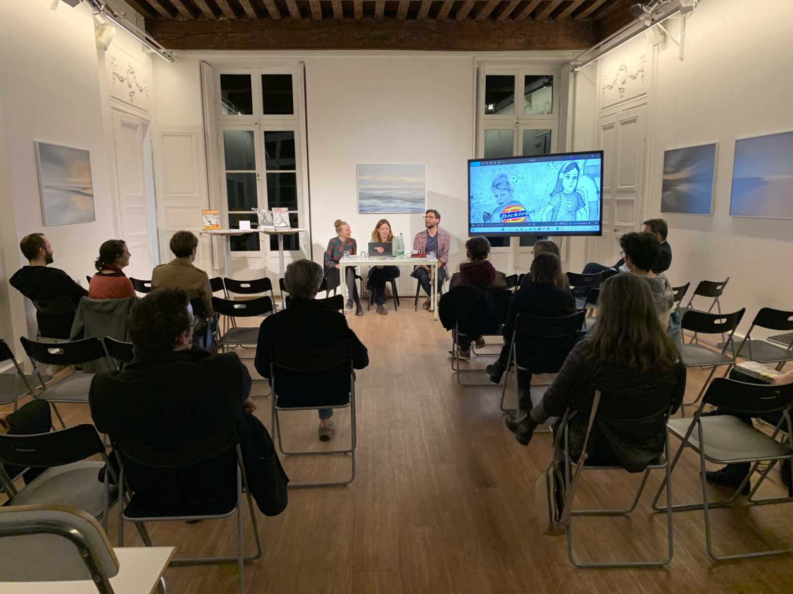 Nous remercions chaleureusement l’illustratrice Simone F. Baumann pour sa visite hier soir à la Maison de Rhénanie-Palatinat. À l’aide de photos et de vidéos, elle a donné au public un aperçu authentique de ses inspirations et du processus de création de ses bandes dessinées.